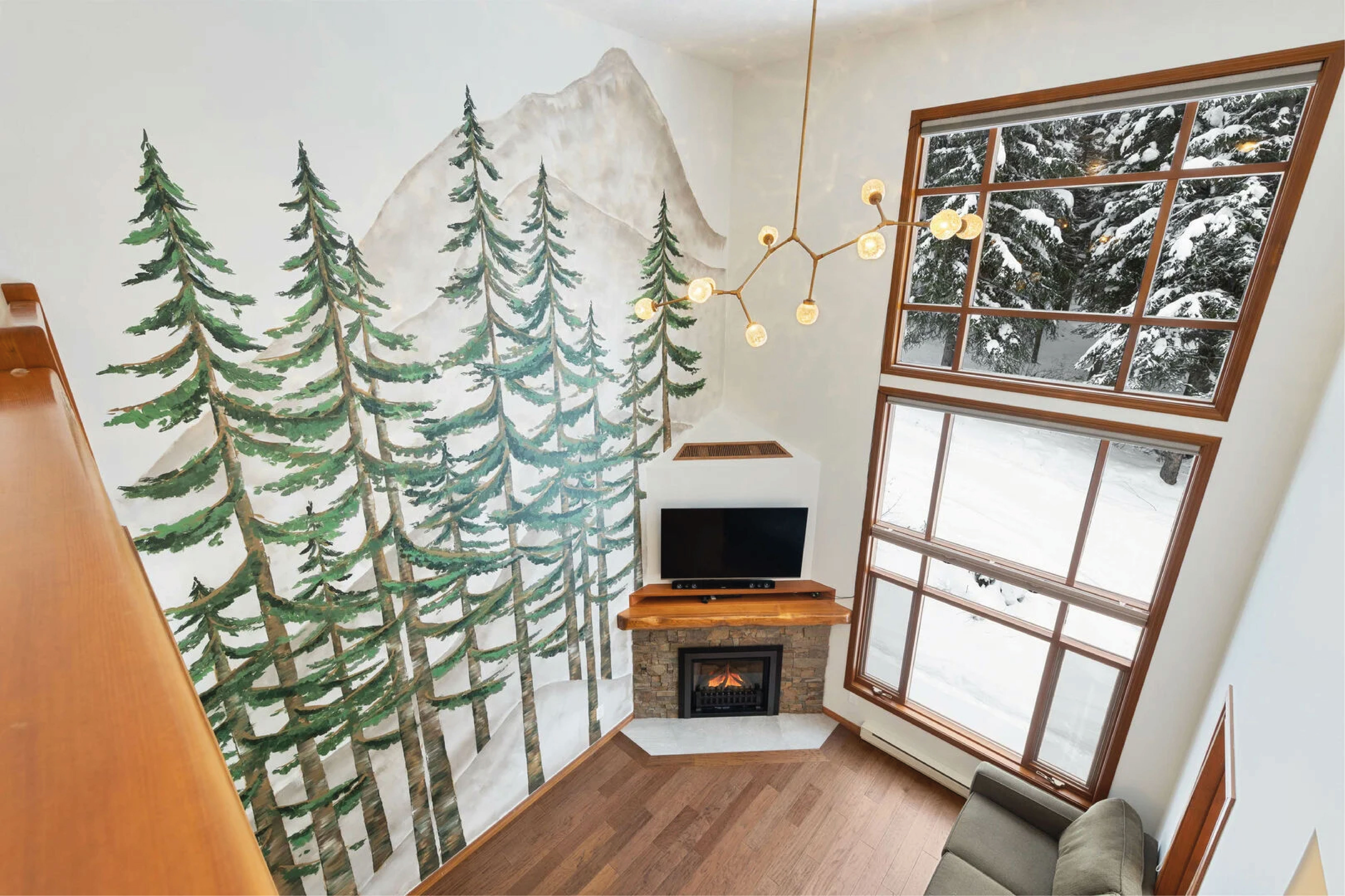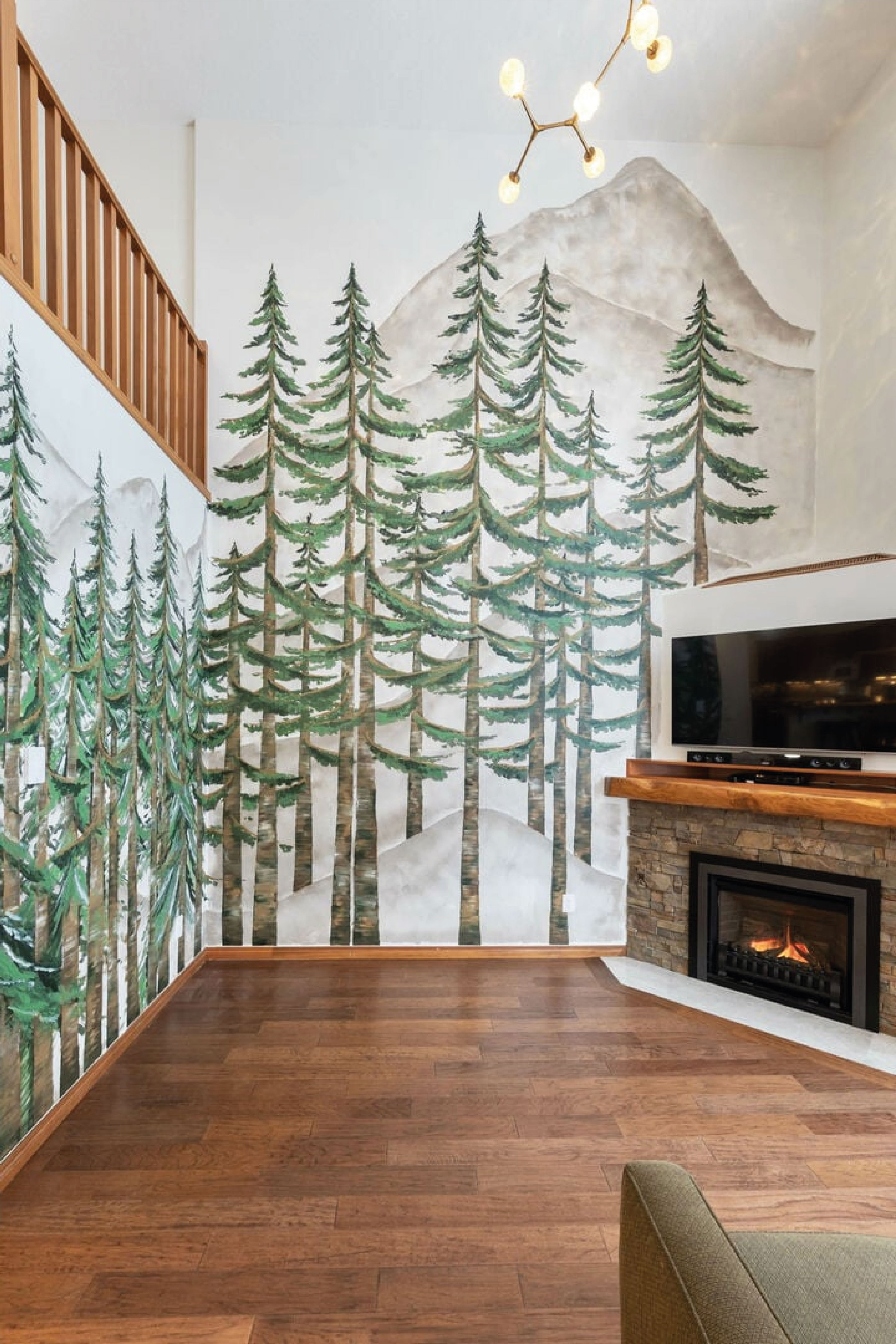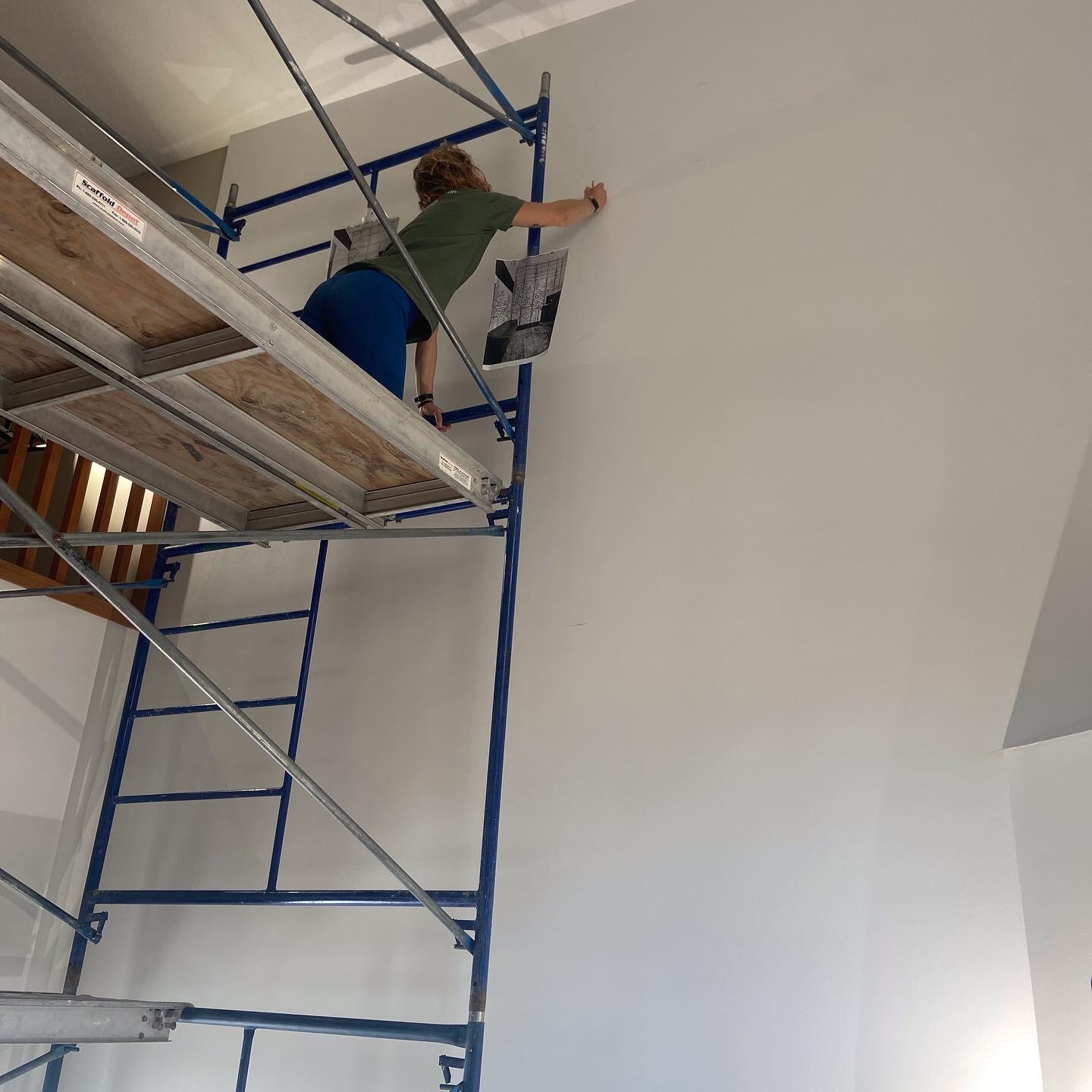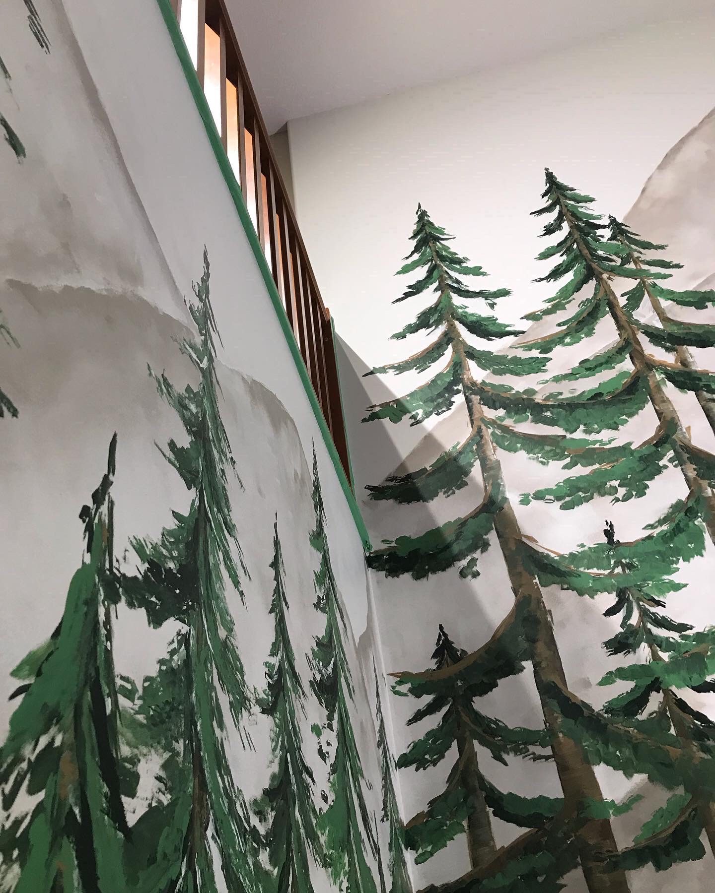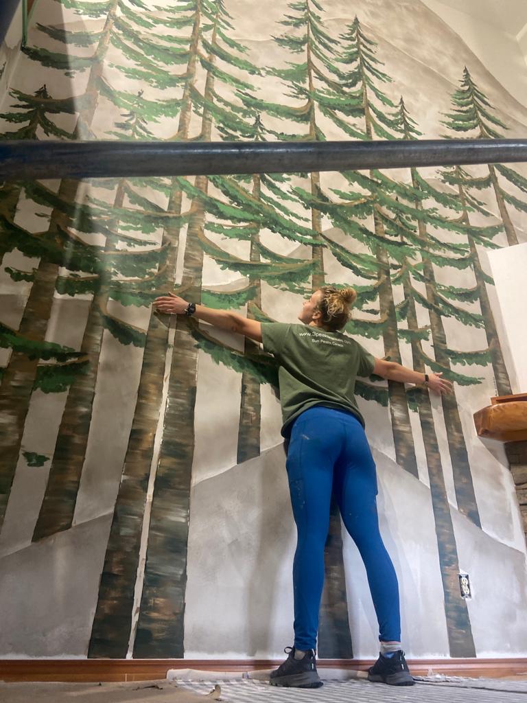 I’m really happy with how my wall mural has turned out for 3 Peaks Rentals! I now have some professional photos to show you. I have already posted about this painting but I feel these photos are worth talking about as they bring it to life and show the scale. The wall was 18ft high and had to be painted using scaffolding. You can see the process I went through in older posts below. I hope you like the pictures!