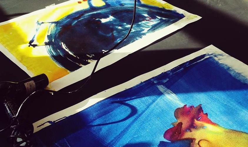 Painting on the silk screen before transferring onto paper