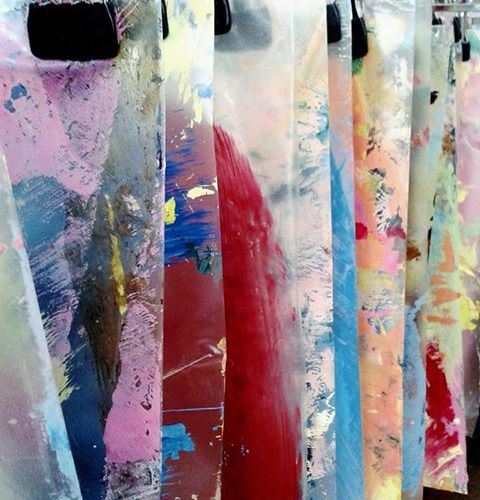 Whilst I’ve been painting my large A1 pieces, I’ve been using plastic sleeves for palettes. The result was layers of paint and transparent areas.