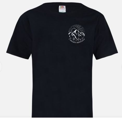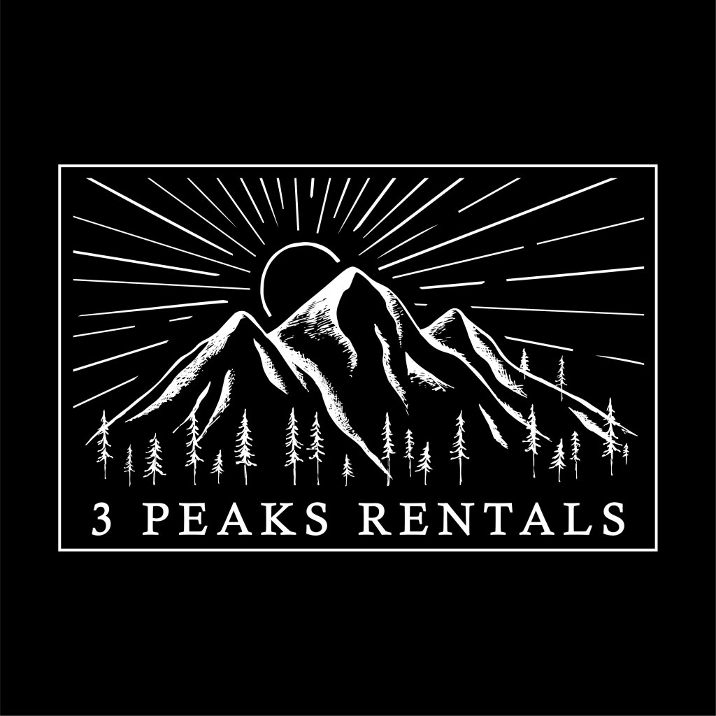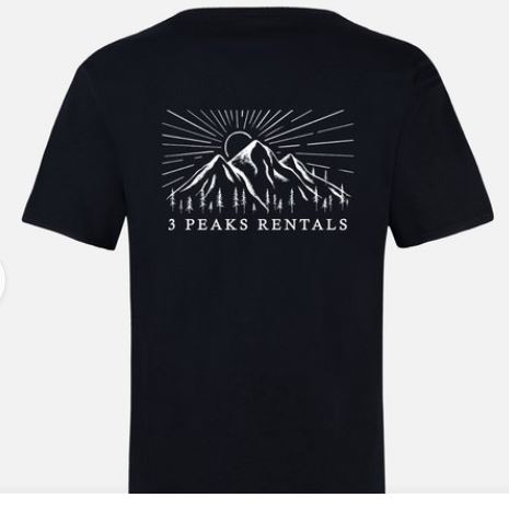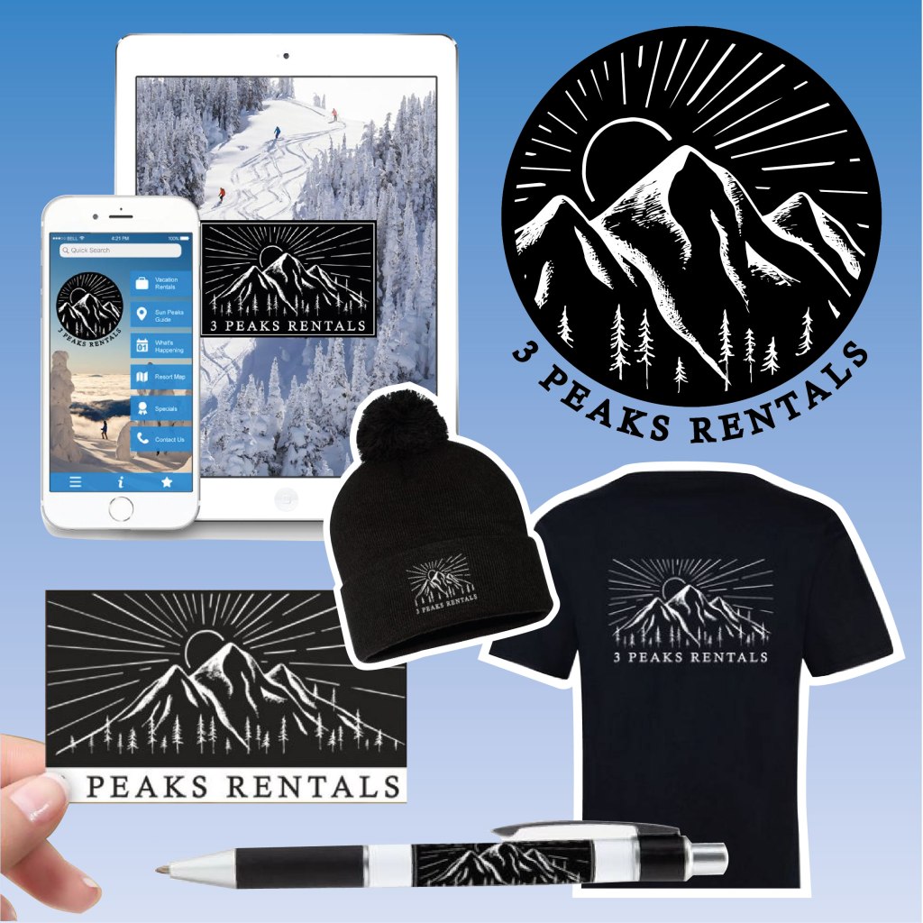 Promotional products for 3 Peaks Rentals, including logo design: