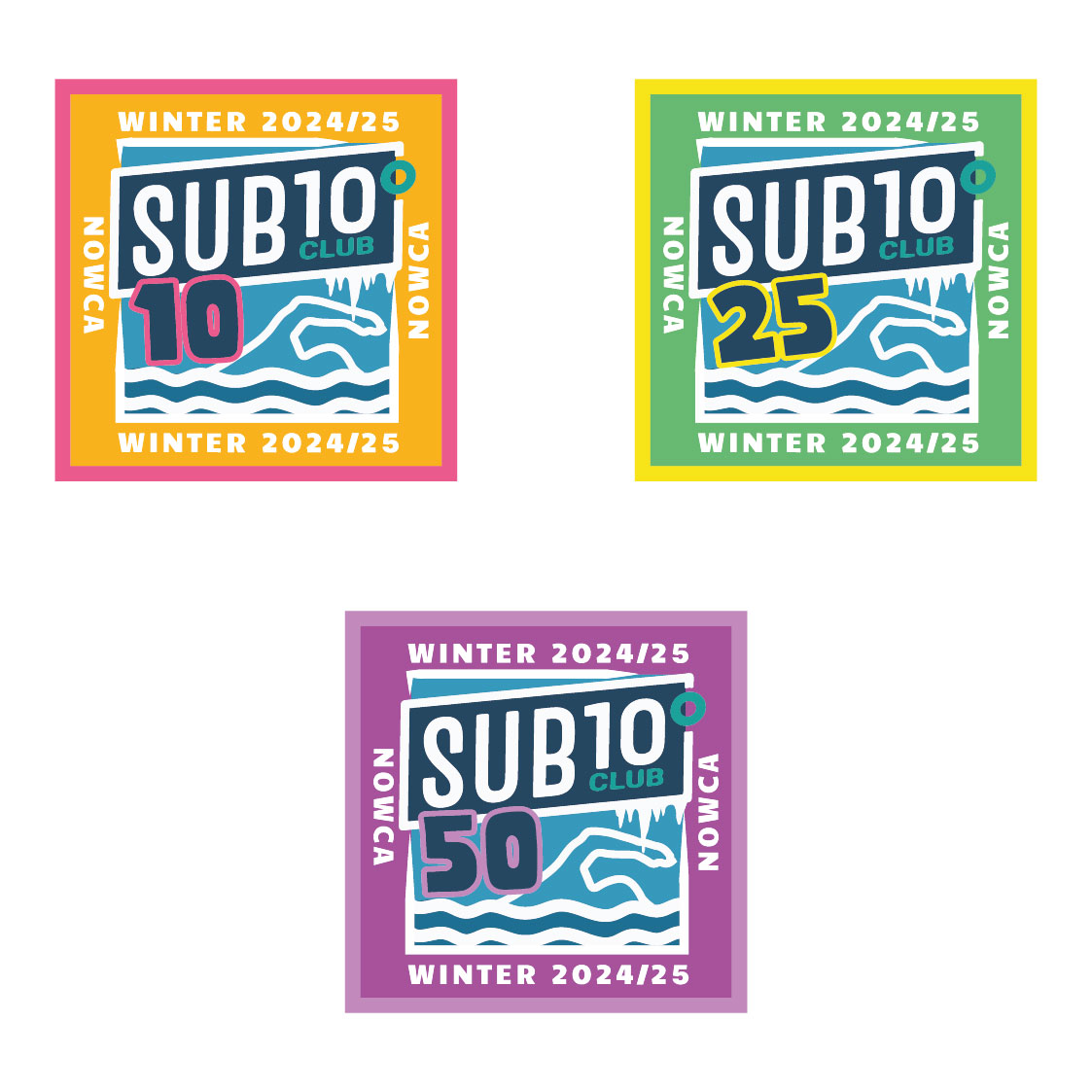 Sub 10º Club badges for NOWCA – the UK’s largest network of safe open water swimming venues.
