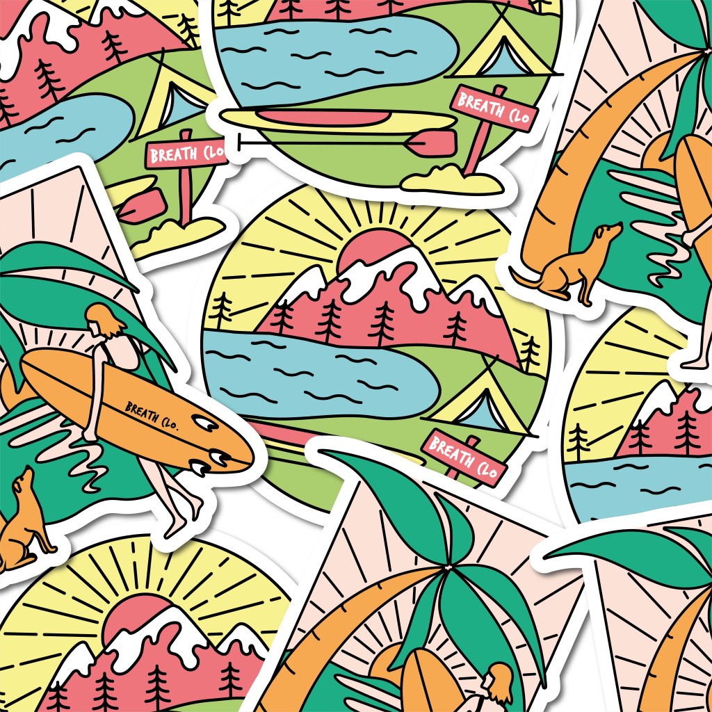 The below sticker designs were created for Breath Clo. An outdoor lifestyle brand based in Greece. These designs are also available on other products such as t-shirts. You can view these here.